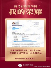 導(dǎo)師優(yōu)勢:馬來西亞研究生部資深顧問,善于挖掘申請人特點,快速、準(zhǔn)確制定個性化留學(xué)申請方案;積累了大量的高端申請成功案例,深受學(xué)生和家長的信賴。
